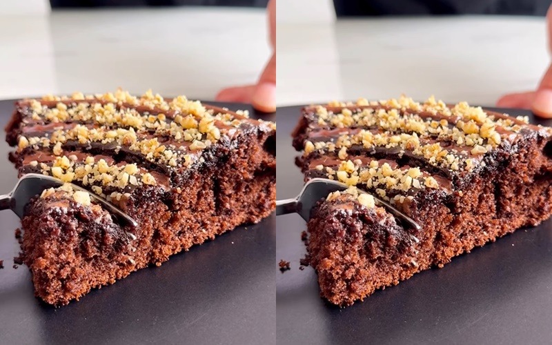 Kada rubovi kolača počnu da se stvrdnjavaju nakon otprilike 12 do 13 minuta, dodajte orahe u smjesu. Mljeveni ili krupno sjeckani orašasti plodovi dodaju ne samo hrskavost, već i dodatne nutritivne vrijednosti. Ponovo pokrijte tiganj i ostavite da se kolač peče još 15 minuta. Da biste provjerili njegovu zrelost, upotrijebite čačkalicu. Ukoliko čačkalica izađe čista, vaš kolač je spreman za posluživanje. Ovaj brz recept će vas oduševiti svojom jednostavnošću i ukusom, a sigurni smo da će biti hit među vašim prijateljima i porodicom!