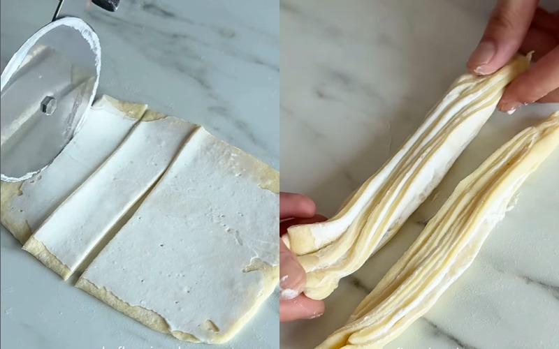 Nakon fermentacije, ponovo ispuhnite tijesto i prebacite ga na radnu površinu lagano posutu brašnom. Podijelite tijesto na 16 jednakih dijelova. Svaki dio razvaljajte u pravokutnik dimenzija 17 cm x 14 cm. Tijesto zatim oblikujte prema vlastitim željama, a možete se poslužiti i videom za inspiraciju. Ostavite da fermentira dok ne udvostruči svoj volumen. Ovaj proces je ključan za postizanje sočnih peciva, pa budite strpljivi i ne preskočite ga! Nakon što je tijesto naraslo, premažite ga mlijekom prije pečenja, što će mu dati predivnu zlatnu boju prilikom pečenja.