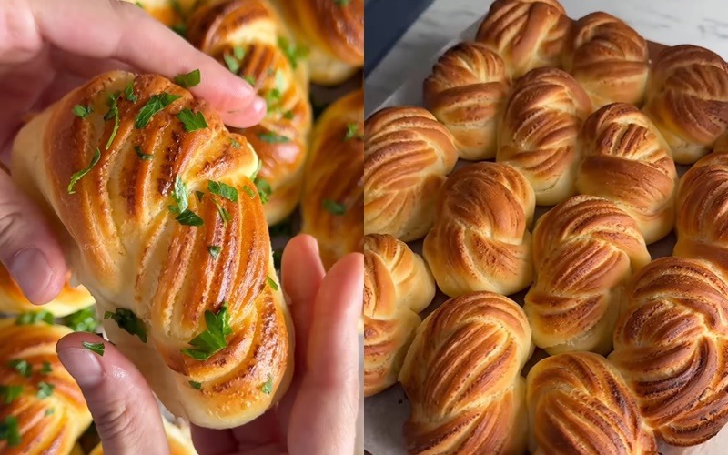 Pecite u prethodno zagrijanoj pećnici na 180 stepeni Celzijusa dok ne postane zlatno smeđe i mekano. Kada su peciva gotova, premažite ih otopljenim maslacem i pospite sitno sjeckanim peršinom za dodatni okus. Ovaj detalj će dodati svježinu i bogatstvo okusa, a peciva će izgledati još privlačnije.