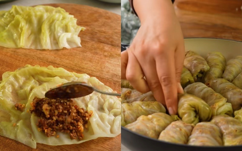 U tu smjesu dodajte rižu, posolite i pobiberite po ukusu, te sve dobro izmiješajte. Riža će tokom pečenja upiti sve sokove i arome, čineći nadjev sočnim i ukusnim. Kada je nadjev gotov, sklonite ga sa vatre i pustite da se malo ohladi. Ohladiti nadjev je važno kako ne biste oštetili listove kupusa prilikom motanja.