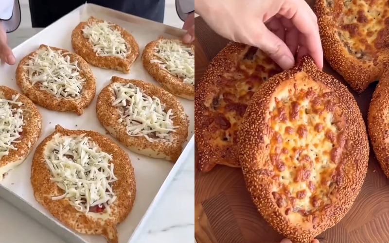 Nakon što je tijesto odmoreno, oblikujte dijelove prema načinu prikazanom u video uputama. Za pripremu vode s melasom, pomiješajte 4 žlice melase s 1/2 šalice vode. Oblikovano tijesto prvo umočite u ovu smjesu, a zatim ga premažite toaster sjemenkama sezama radi dodatnog okusa i hrskavosti. Melasa će dodati blagu slatkoću i sjaj, dok će sjemenke sezama pružiti dodatnu teksturu. Na kraju, pospite naribanim sirom po vrhu pite kako biste dodali bogatiji sloj okusa. Sir poput edamera ili gaude najbolje se topi i daje lijepu pohanu koricu.