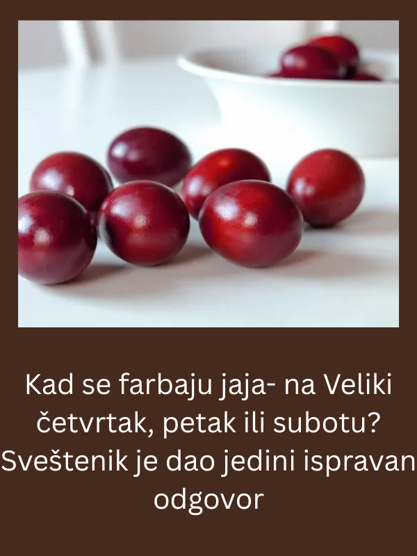Jedno od čestih pitanja uoči Uskrsa je kada je pravi trenutak za farbanje jaja: na Veliki četvrtak, petak ili subotu? Iako se tradicija može razlikovati u različitim krajevima, odgovor na ovo pitanje, koji je dao sveštenik, razjasnio je mnogima kada je u stvari pravi trenutak.