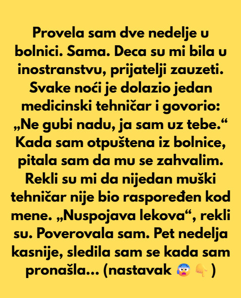 Kako su dani prolazili, bolničko osoblje dolazilo je i odlazilo, ostvarujući svoju dužnost, ali ostavljajući pacijentkinju bez one ljudske topline koja joj je bila potrebna. Dok su pružali medicinsku pomoć, ona se često osjećala kao samo još jedan broj na listi. U trenucima slabosti, počela je preispitivati svoju vlastitu vrijednost. Da li je ikada bila nekome važna ili je uvijek bila samo ona koja razumije i čeka? Ova introspekcija je dodatno pojačala njen osjećaj izolacije, sve dok nije došlo do promjene.