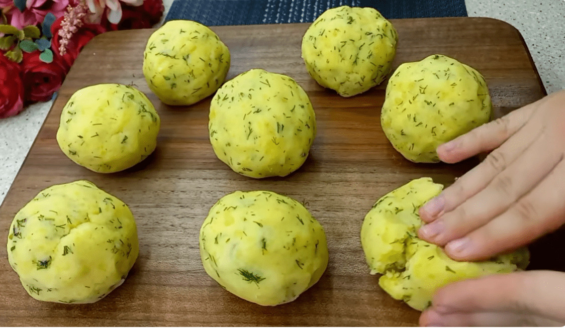 Prvi korak u pripremi ovog jela je kuhanje krumpira. Stavite nasjeckani krumpir u veći lonac, dodajte vodu i 1 žličicu soli. Neka smjesa zakipi, a zatim smanjite vatru i kuhajte dok krumpir ne omekša, što će trajati oko 15 do 20 minuta. Nakon kuhanja, dobro ocijedite krumpir i vratite ga u lonac. Započnite pripremu pire krumpira dok je još topao. Umiješajte maslac, mlijeko, pola žličice soli i sitno sjeckani kopar dok gnječite krumpir. Nastavite miješati dok ne dobijete glatku i kremastu konzistenciju, vodeći računa da ostane dovoljno čvrsta za oblikovanje. Ostavite pire da se malo ohladi, kako bi rukovanje bilo lakše. Za pripremu mesnog sloja, u zdjeli pomiješajte mljeveno meso, sitno nasjeckani luk, sol, papar, dimljenu papriku i druge začine po želji. Lagano miješajte dok se sastojci ne sjedine. Smjesu podijelite na devet jednakih dijelova i oblikujte male pljeskavice. Pire krumpir podijelite na 9 dijelova i oblikujte u diskove debljine oko 1,5 cm. Ove diskove položite u pleh obložen papirom za pečenje. Ovaj korak je važan za pravilno pečenje, jer će diskovi od pire krumpira biti osnova za mesne pljeskavice.
