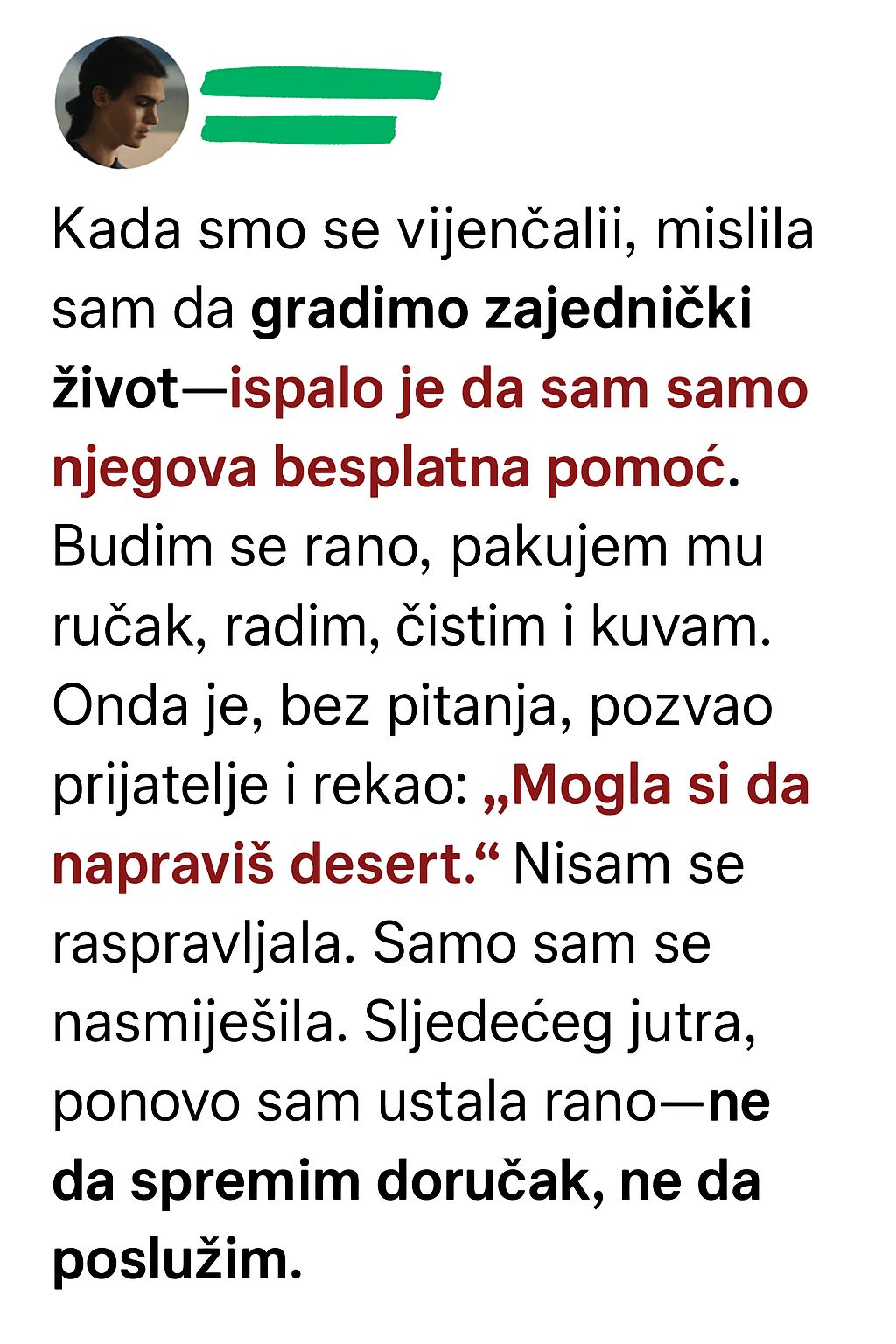 Na kraju, svaka osoba zaslužuje ljubav, poštovanje i uzajamnu podršku. Ne treba se zadržavati u toksičnim odnosima koji donose više bola nego sreće. Samo kada se oslobodimo toksičnih veza, možemo zaista živeti život punim plućima. Ova priča nas podseća na važnost samopouzdanja, unutrašnje snage i sposobnosti da se zauzmemo za sebe. Svaka osoba ima pravo da bude srećna i da živi život kakav želi, a ne onakav kakvim ga određuju drugi.